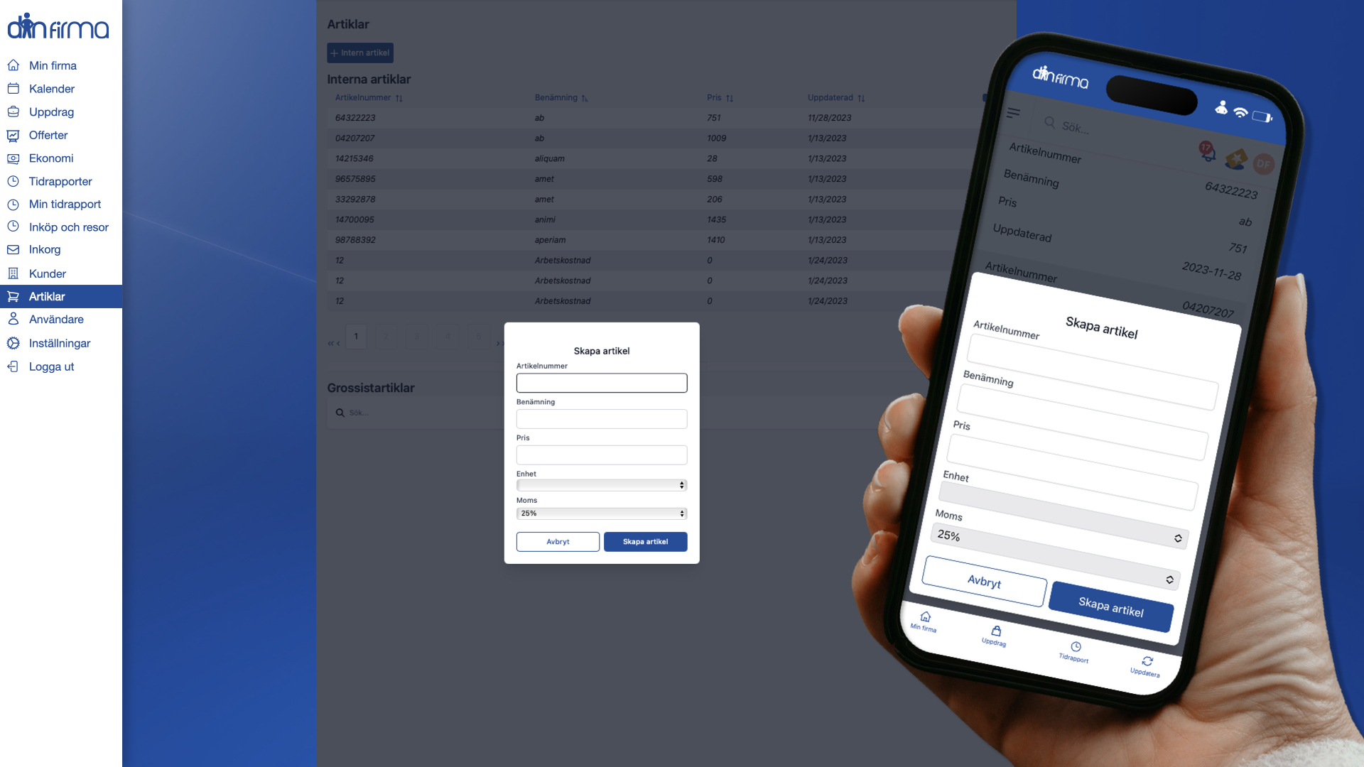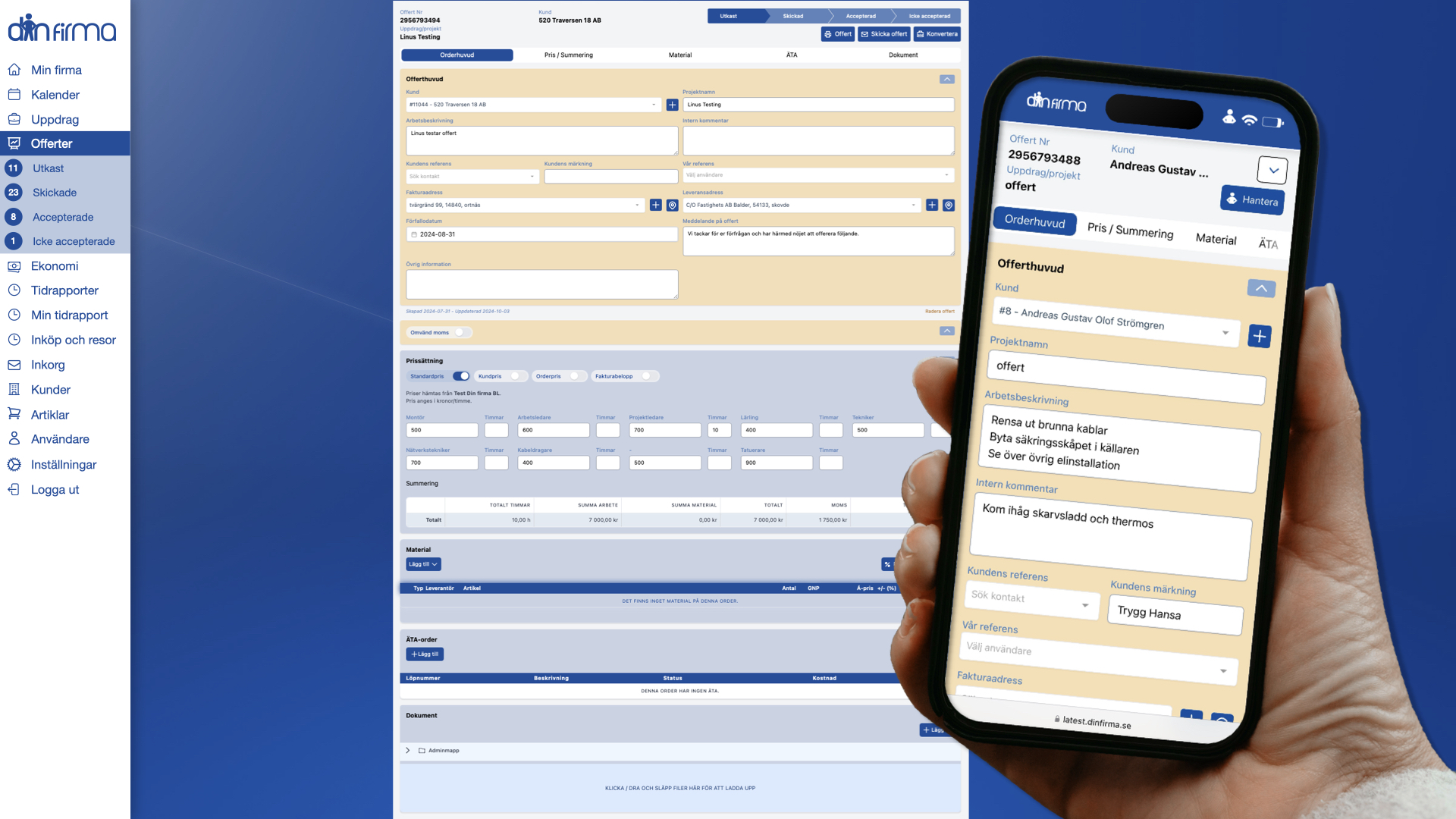 Din firma är ett komplett arbetsordersystem med integrerad ekonomihantering – en helhetslösning som följer dig hela vägen från offert till bokslut.